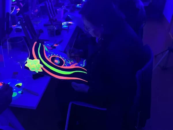 Art & Wine Neón es mucho más que una sesión de pintura: es una experiencia sensorial y colaborativa donde la creatividad se enciende bajo luces flúor. En un ambiente distendido, cada participante pinta con colores neón sobre lienzos que cobran vida bajo la iluminación ultravioleta, mientras disfruta de una copa de vino cuidadosamente seleccionada.